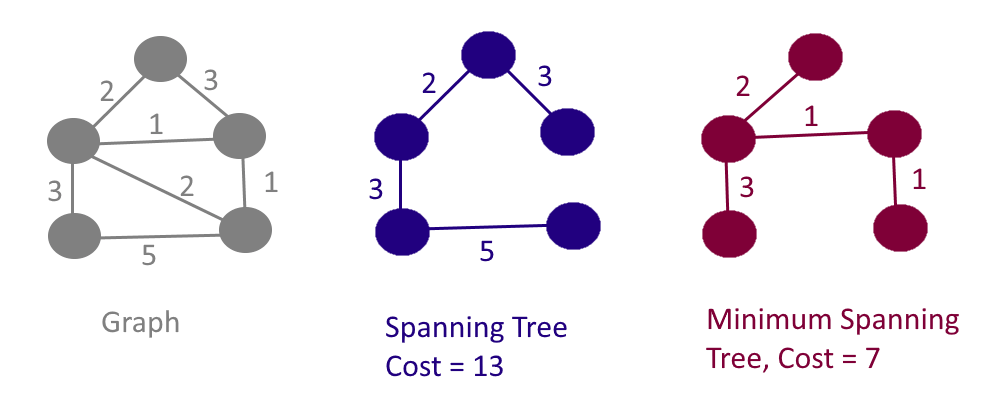 신장 트리란 그래프 상에서 모든 노드가 사이클 없이 연결된 부분 그래프를 뜻한다. 이 부분 그래프는 여러개가 존재할 수 있다. 따라서 최소 신장 트리란 여러 개의 부분 그래프 중 모든 정점이 최소 간선의 합으로 연결된 부분 그래프이다.